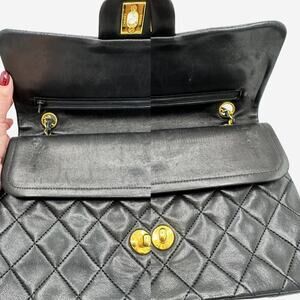 Authentic Vintage Chanel Lambskin Medium Classic Double flap with 24k gold plated hardware in black from the early 90s.