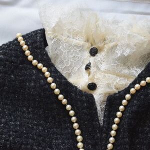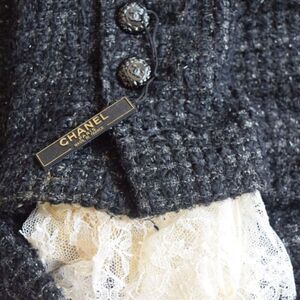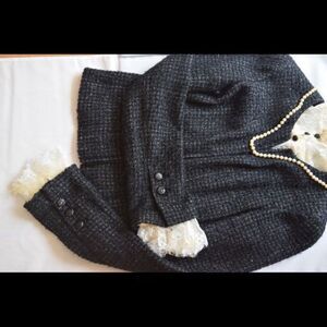Beautiful and sophisticated. Size 34/2 Can be worn with vintage, Stunning detachable Victorian lace around neckline and cuffs. Tailored fit. Tweed material with faint silver accents. (One of a kind) Gently used. Authenticity guaranteed.