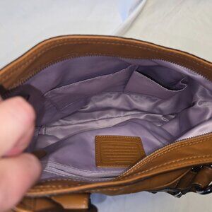 Vintage Authentic Coach Pieced Large Shoulder Bag in Cognac F17116