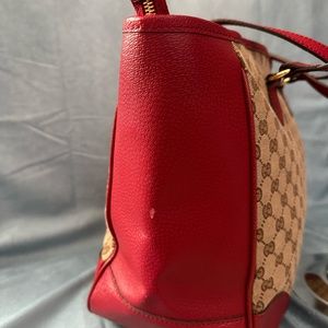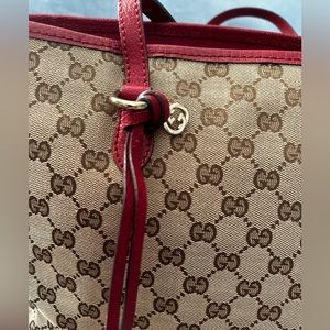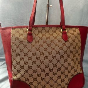 Vintage Authentic Gucci Monogram Bree Zippered Tote ( Red Beige canvas) …