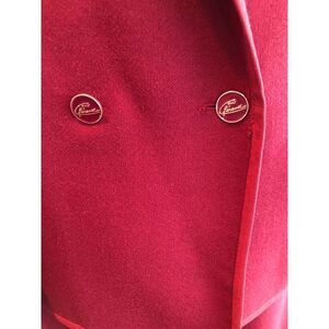 The set comes in a solid burgundy color and has a double-breasted jacket cut with a two-button front button style. It includes a skirt and jacket, making it a perfect fit for any woman looking for a designer-themed outfit.
