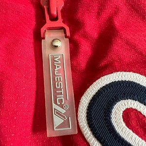 Vintage Authentic Majestic XXL Boston Red Sox Zip Pull Over Jacket-some wear on cuff and hem as seen and some staining on lettering as seen.