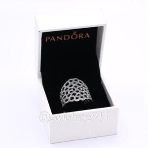 Authentic Pandora Retired Sterling Silver Shimmering Lace With Cubic Zirconia Ring, S 925 ALE