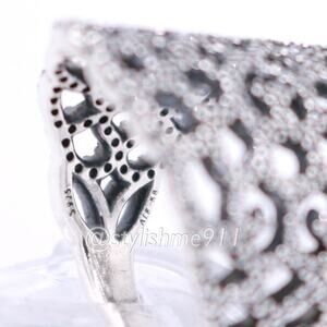 Vintage Authentic Pandora Silver Shimmering Lace Ring - 190907CZ