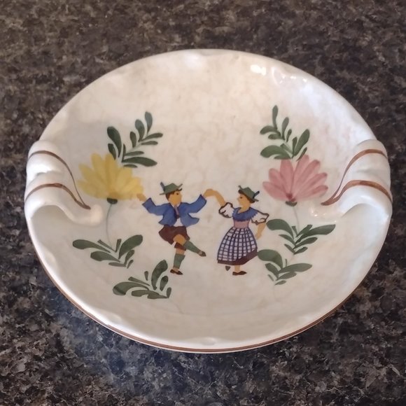 I have decided to sell some of my vintage "rare" Alpine Peasant Ware. Original Authentic Alpine Peasant Ware is prewar handmade and hand painted ironstone and was made before Germany split and is NOT the imitation "oven safe" copy of this pattern. This piece is a very hard to find candy dish and is in excellent condition. This piece is numbered and is approximately 6 1/2 inches across. If you are a collector of Authentic Peasant Ware or SMF Schramberg Majolika you want to have this piece in your collection. Please message me if you have any questions. Thank you.