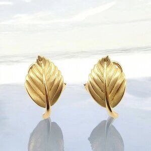 Vintage! Authentic Tiffany & Co Leaf 18k Yellow Gold Earrings 2003