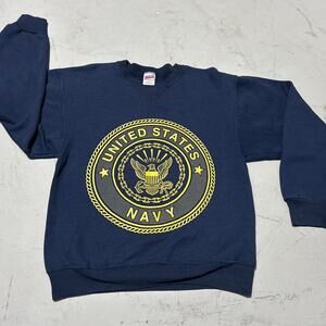 This vintage U.S. Navy pullover sweatshirt in navy blue features the iconic eagle seal logo. Authentic and in great condition, it’s perfect for Navy enthusiasts or collectors.