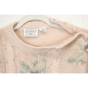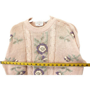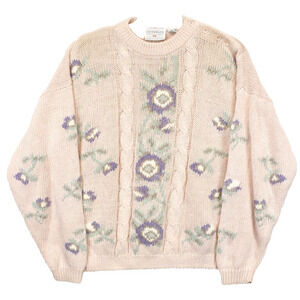 vintage floral sweater, Autograph American Clothing, ramie cotton knit, Hong Kong vintage sweater, grandmacore sweater, embroidered floral knit, cable knit sweater, cottagecore pullover, 80s 90s retro sweater, pastel vintage sweater