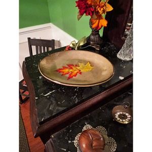 Hand-painted autumn maple leaves serving tray or platter. The platter is in very good pre-owned condition and is signed by J Loftis on the bottom.