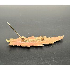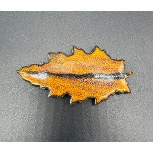 Vintage Autumn Leaf Brooch Pin Enamel on Copper Statement Fall Jewelry Orange