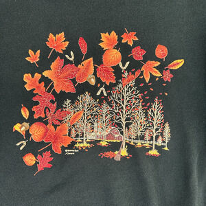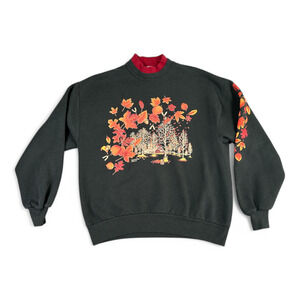 Vintage Autumn Leaves Sweater Adult MEDIUM Black Sweatshirt Double Collar 90s