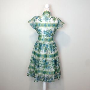 Vintage Avalon Floral Print Dress Fit & Flare Pleated Velvet Detail 60s Size 10