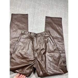 Vintage Avanti Brown Leather High Rise Slim Pants Womens 8 Made In Korea
