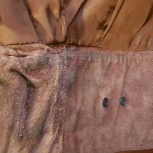 This jacket is beautiful. It was made in Yugoslavia and dates back to the 1980's. It has some awesome built in shoulder pads. It has a bomber over-sized feel to it. The jacket is in really amazing condition, but will need a really good cleaning once in your position. I have taken photos to show the uncleanliness of the jacket and it will need a leather dry cleaning technique; one of which I do not know, so I will leave up to the new owner.
