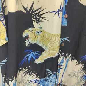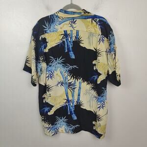 Vintage Avanti Silk Hawaiian Shirt Mens Large Tiger Bamboo AOP Print Floral
