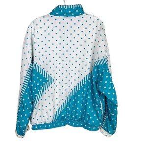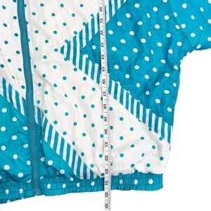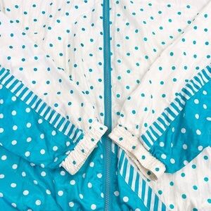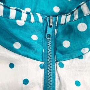 Vintage Turquoise and White Polka Dot Nylon Windbreaker Size Large