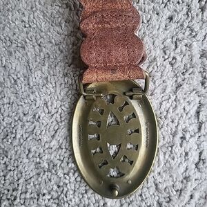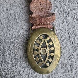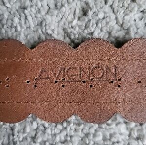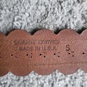 Vintage Avignon Belt Womens Small Brown Leather Perforated Brass Buckle Boho USA