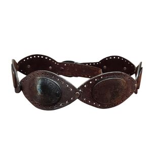 Vintage Avignon Silver Leather Embellished Metalwork Wide Belt size L Bohemian