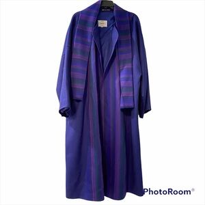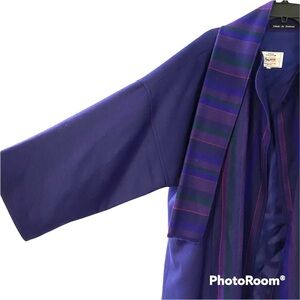 This beautiful woven wool Cape coat has two hidden front pockets, an attached scarf and rolled sleeves. It is in pristine condition.