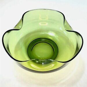 Vintage Avocado Green Glass Folded Edge Bowl