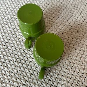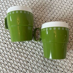 Vintage Avocado Green New-Mar Plastic Insulated Coffee Cups Daisy Design Set 2. Smoke free home. Some minor markings inside. Awesome condition!!