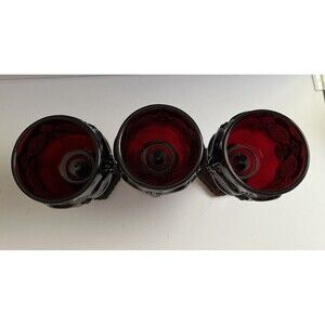 Vintage Avon 1876 Cape Cod Ruby Red Cordial Wine Glasses Footed Stem 4.5" Set/3