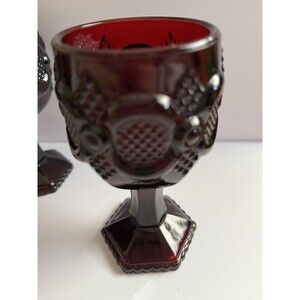 Up for sale are these Vintage Avon 1876 Cape Cod Ruby Red Cordial Wine Glasses Footed Stem 4.5" Set/3.