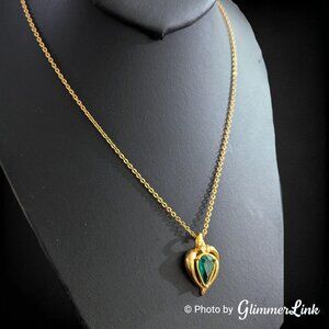 Vintage Avon 1994 May Birthstone Heart Pendant Necklace Gold Tone