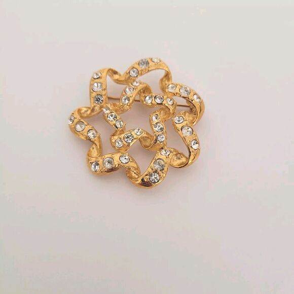 Vintage Avon 1998 Gold Tone Clear Rhinestone Flower Brooch Pin
