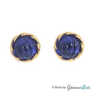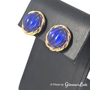 Vintage Avon 90s Raj Simulated Sapphire Round Lucite Gold Tone Clip On Earrings