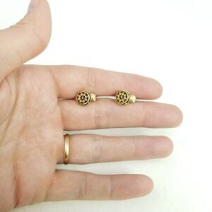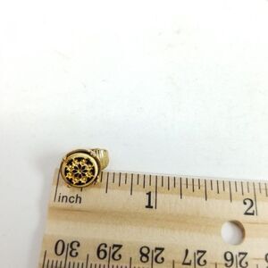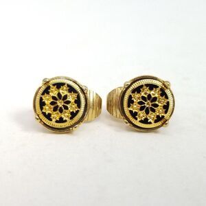 Vintage Avon Black and Gold Tone Floral Design Round Clip On Earrings, Small
