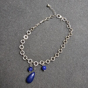 Vintage Avon Blue Stone Bead Dangle Bracelet Silver Tone 10 In Adjustable shows signs of wear such as scratches and tarnishing see pictures for reference
