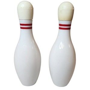 Vintage Avon Bowling Pin White Milk Glass Red Stripes Bottles Decanters. Empty. Collectible.