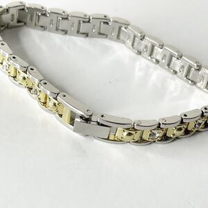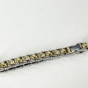 Vintage Avon Bracelet Gold Tone Silver Rhinestone Chain Link 80s 90s Casual Glam