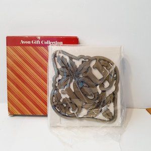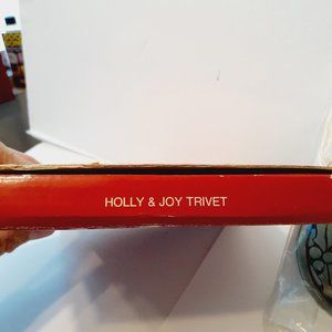 Vintage Avon Brass, Footed Trivet & Wall Hanging "JOY" with Christmas Holly