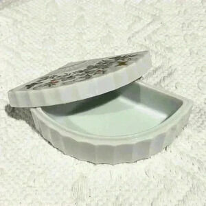 Vintage Avon Butterfly Fantasy Fan Shaped Hand Crafted Porcelain Trinklet Box