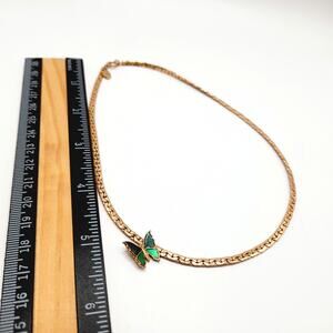 Vintage Avon Butterfly Necklace Gold Tone Green Enamel Accent 14 3/4 Inch