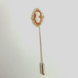 Vintage Avon Cameo Stick Pin Brooch, Gold Tone Faux Pearl Lady Portrait Estate