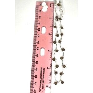 The Vintage Avon Cat's Eye Vine Silver Tone Link Brown Bead Bracelet or Anklet is a unique and stylish piece of jewelry that can be worn as either a bracelet or anklet. The length is 10" end to end but is adjustable an inch or so smaller. The silver tone links and brown beads give it a classic and elegant look, perfect for adding a touch of vintage charm to any outfit. The lobster closure makes it easy to put on and take off, while the stackable and adjustable features allow for versatility in styling. Made by the trusted brand Avon, this piece is sure to be a timeless addition to any jewelry collection.