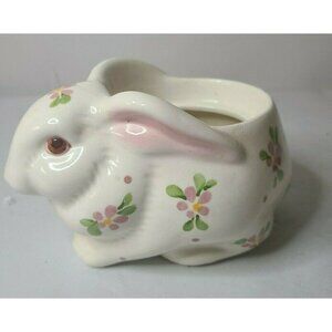 Vintage Avon Ceramic Floral Bunny Rabbit Planter Hand Painted Made in Brazil 6"