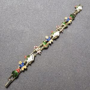Vintage Avon Christmas Holiday Slide Cahrm Bracelet Enamel Gold Tone 8" Long shows signs of wear such as s ratches and discoloration see pictures for reference