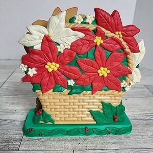 Vintage Avon Christmas Napkin Card Holder POINSETTIA Basket Shape Hard Plastic