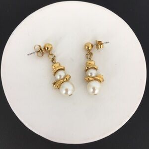Vintage Avon Christmas Pearl Snowman Post Earrings Gold Tone Dangle