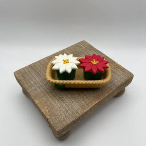 Vintage Avon Christmas Poinsettia Salt and Pepper Shakers in a Basket