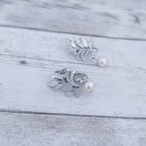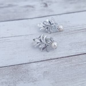 Vintage Avon Clip On Earrings Silver Tone with Faux Pearl Dangle
