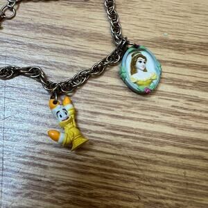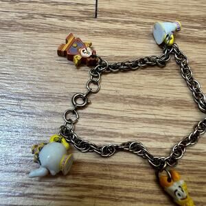 Add a touch of Disney magic to your jewelry collection with this vintage Avon Beauty and the Beast Mrs. Potts teapot earring charm bracelet. The bracelet features multiple charms that represent the beloved characters from the movie, including Mrs. Potts herself, Chip, and Lumiere. The earring charms are designed to look like mini teapots, adding a unique and fun element to your accessory game. This rare piece is perfect for Disney lovers and collectors alike, with its intricate detailing and charming design. The bracelet is in excellent condition, with all charms securely attached to the chain. Add a touch of whimsy to any outfit with this Beauty and the Beast Mrs. Potts teapot earring charm bracelet.