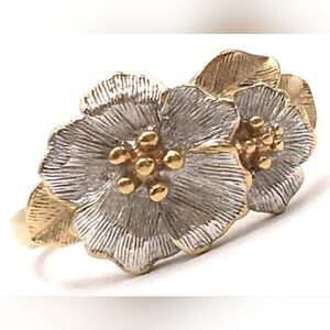 Vintage Avon Dogwood Apple Blossoms Silver Tone & Gold Tone Ring (5)