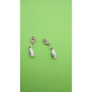 Vintage Avon Earrings White Blue Teardrop Dangle Delft Blue Porcelain