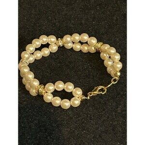 Vintage Avon Faux Pearl Bracelet With Gold Tone Beads Signed J64