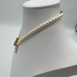 • Pendant Detail: Gold-tone floral bow with rhinestones and dangling pearls